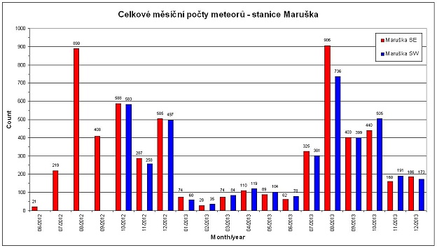 Kamera Maruška_SE (JV kamera) zaznamenala od svého spuštění 25.6.2012 celkem 5775 jednostaničních video meteorů (stav k 22.12.2013), kamera Maruška_SW (JZ kamera) zaznamenala od svého spuštění 6.10.2012 celkem 4123 jednostaničních video meteorů (stav k 22.12.2013). Kamera Maruška_SE tak zaznamenala více meteorů jak kamera Kroměříž_ENE (5323) a to i přes to, že kamera Kroměříž_ENE byla v činnosti o půl roku delší dobu (první pololetí roku 2012). Z tohoto je také jasný další význam této stanice, která se nachází v místě s nízkým světelným znečištěním, na rozdíl od stanice Kroměříž.