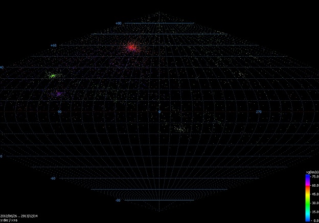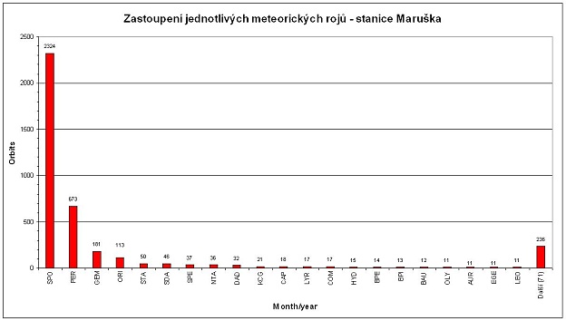 Mezi 3899 vícestaničními dráhami ze stanic Kroměříž, Maruška a Bílý Kříž bylo identifikováno 91 meteorických rojů s jedním a více meteory, nejvíce bylo samozřejmě sporadických (2324 drah), z meteorických rojů byly nejvíce zastoupeny Perseidy (673) drah, následovány Geminidami (181 drah), Orionidami (113 drah), jižními Tauridami (50 drah).