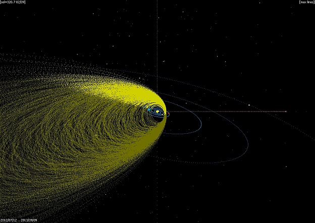 Obr.5.: Dráhy 673 vícestaničních Perseid ve Sluneční soustavě