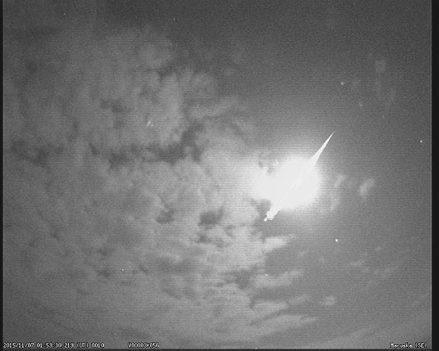 Nejjasnější bolid byl zachycen 7.11.2015 v 01:53:30 UT ze stanic Maruška, Kráčany, Nýdek a Valašské Meziříčí (zde pouze přes oblačnost). Bolid patřil k jižní větvi Taurid (STA), geocentrická rychlost tělesa byla 28,8 km/s, meteoroid se původně nacházel na typické dráze s perihéliem blízko oběžné dráhy planety Merkur (q= 0,370 AU) a aféliem blízko oběžné dráhy planety Jupiter (velká poloosa dráhy a= 2,5 AU), sklon dráhy k ekliptice byl pouze 4,4o. Absolutní jasnost bolidu byla -10,4m, byl tedy prakticky tak jasný jako Měsíc v úplňku. V atmosféře Země urazil dráhu dlouhou 63,7 km, počátek dráhy ležel ve výšce 105,3 km, konec pak ve výšce pouze 59,7 km, odhadovaná vstupní hmotnost tělesa byla kolem 29 kg.