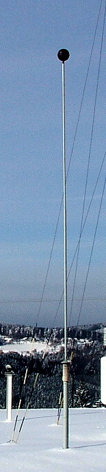 Anténa přístroje pro registraci bleskových výbojů mezi oblakem a zemí. Tento přístroj zaregistruje všechny bleskové výboje "do země" v okruhu cca 10 km.
