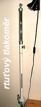Rtuťový tlakoměr k měření tlaku vzduchu.