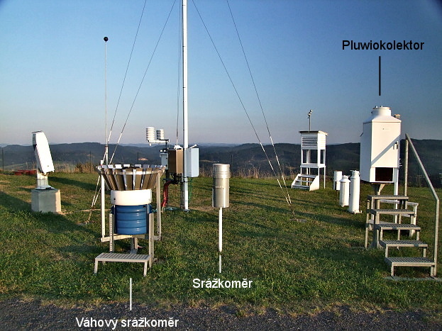 Váhový srážkoměr pro měření množství spadlých srážek. Výhodou váhového srážkoměru je, že spadlé srážky do záchytné nádoby váží, takže odpadají problémy při padání tuhých srážek, které se ve starších typech srážkoměrů musely nejprve roztopit a teprve pak se zjišťovalo jejich množství v mm. Váhový srážkoměr zváží přímo množství srážek kapalných nebo tuhých.