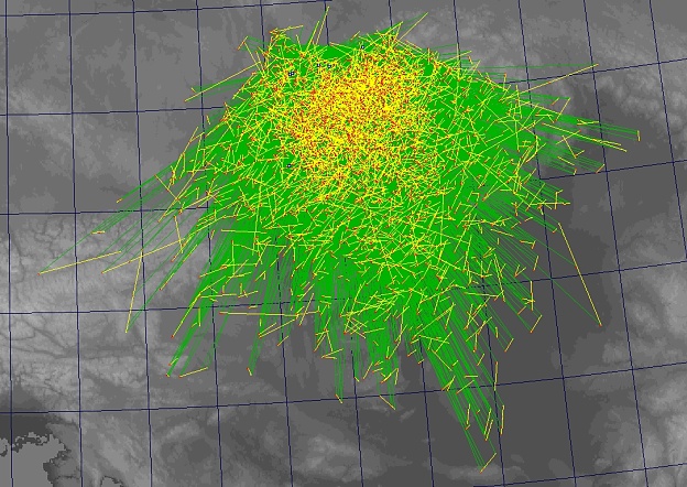 Obr.6.: Fyzické radianty 3899 vícestaničních drah ze stanic Kroměříž, Maruška a Bílý Kříž