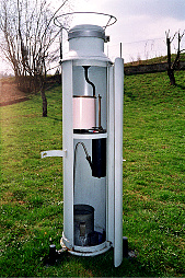 Váhový srážkoměr pro měření množství spadlých srážek. Výhodou váhového srážkoměru je, že spadlé srážky do záchytné nádoby váží, takže odpadají problémy při padání tuhých srážek, které se ve starších typech srážkoměrů musely nejprve roztopit a teprve pak se zjišťovalo jejich množství v mm. Váhový srážkoměr zváží přímo množství srážek kapalných nebo tuhých.