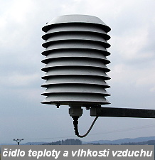 Čidlo teploty a vlhkosti vzduchu v radiačním krytu, který chrání čidlo proti přímému slunečnímu záření a také padajícím srážkám. Radiační kryt je žaluziového typu aby co nejlépe chránil čidlo a zároveň nebránil přístupu vzduchu k samotnému čidlu. Kryt je bílé barvy aby co nejlépe odrážel sluneční paprsky. Čidlo nepřetržitě zaznamenává teplotu a vlhkost vzduchu ve 2 metrech nad zemí.